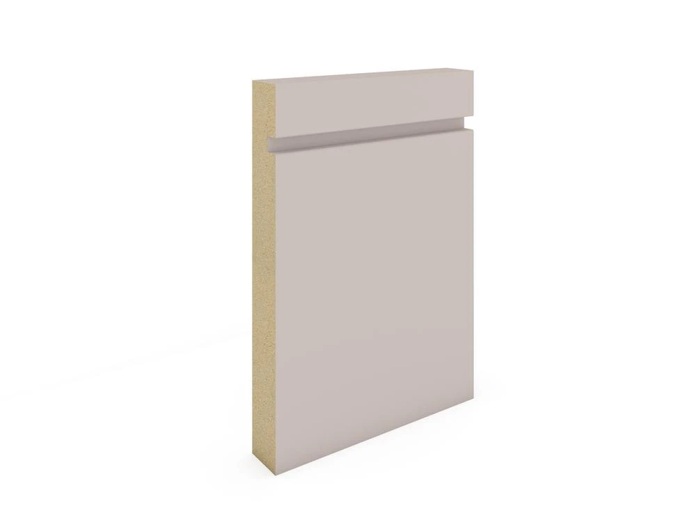 The 18mm x 144mm shadow groove skirting is available in 4.4m lengths and has a beautiful appearance. Because of its regularity and inclination to remain straight, not split and warp, this is quickly replacing solid timber variants. It is suitable for new construction and remodelling projects since it is simple to install and requires only a finishing coat for a professional look. Primed and ready for final coat.