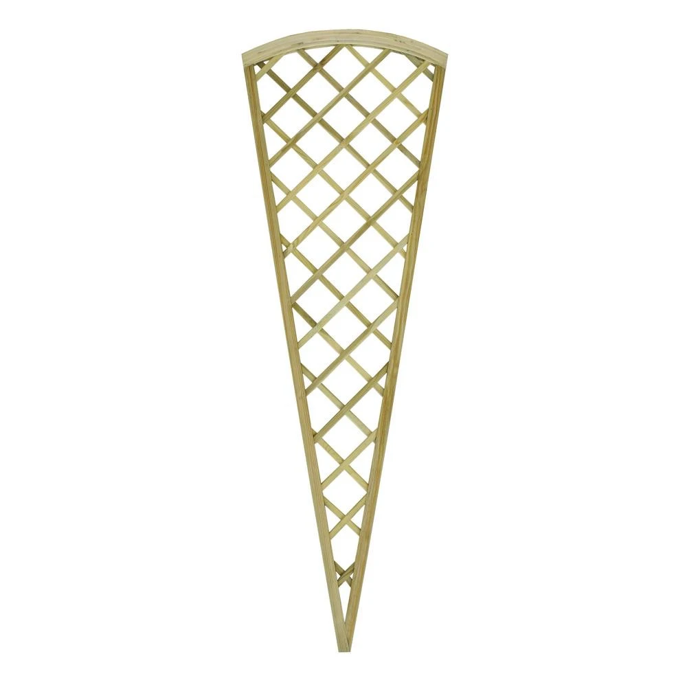A high quality fan-shaped diamond pattern lattice which will make an attractive addition to any garden – ideal for use as a frame for climbing plants that need wider gaps such as climbing roses. The Hidcote Fan Lattice is a high quality fan-shaped diamond pattern lattice that is 180cm tall and 61cm wide at the top, when covered with climbing plants it will make a beautiful eye-catching feature in your garden. The lattice features 8mm thick battens (20mm wide) which are smooth-planed and rounded, overlaid and mounted in a substantial rebated perimeter frame which is also smooth-planed. This fan lattice is perfect for creating a garden feature and the 90mm spacing between the battens makes it ideal for use as a frame for climbing plants that need wider gaps such as climbing roses. All the timber is Pressure Treated to protect it from rot so the finished product will last many years. It comes with a 15 year Anti-Rot guarantee.