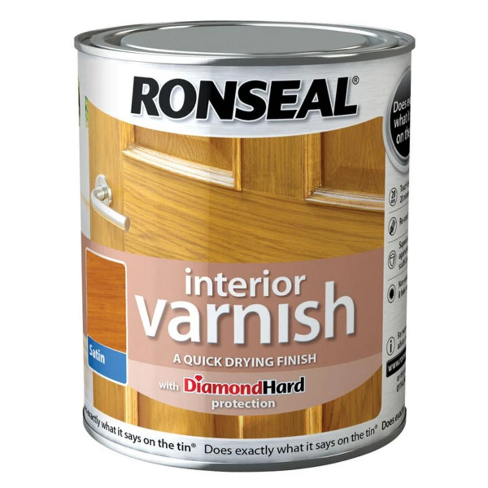Ronseal Interior Varnish (750ml) gives great protection against knocks, scuffs and scratches. Suitable for use on interior wood such as skirting and wood tables to keep the beauty of the wood. It’s easy to use and dries quickly. This varnish leaves a luxurious satin finish.