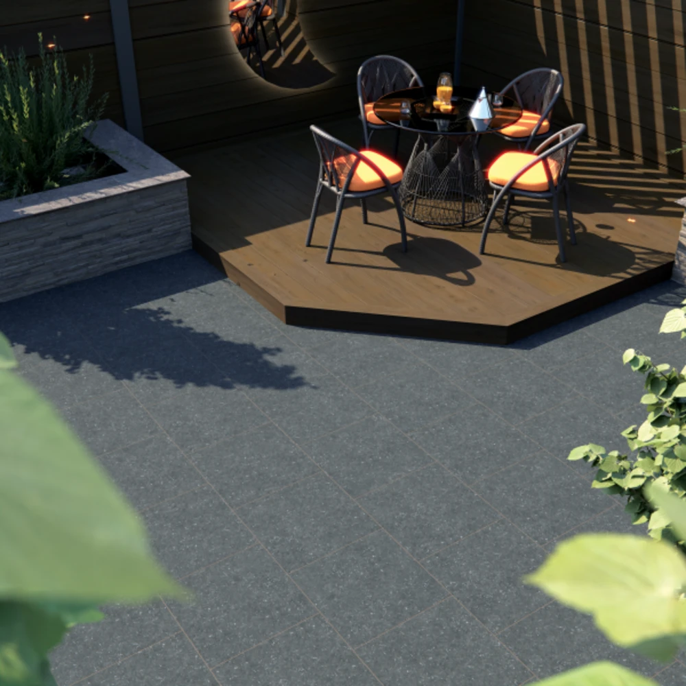 Smoke is a dark shade of black garden slabs from the Vitripiazza Aragon range. The porcelain is finished in a natural, limestone effect with dark tones that provide a truly authentic finish. Howarth offer a wide range of paving boards in a variety of styles and colours, in either natural stone or porcelain. Visit our paving section for more choice.